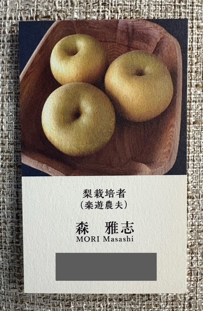 僕の名刺の肩書は、「梨栽培者」となっているのですが、この記載に並べて(楽遊農夫)を追加しました。